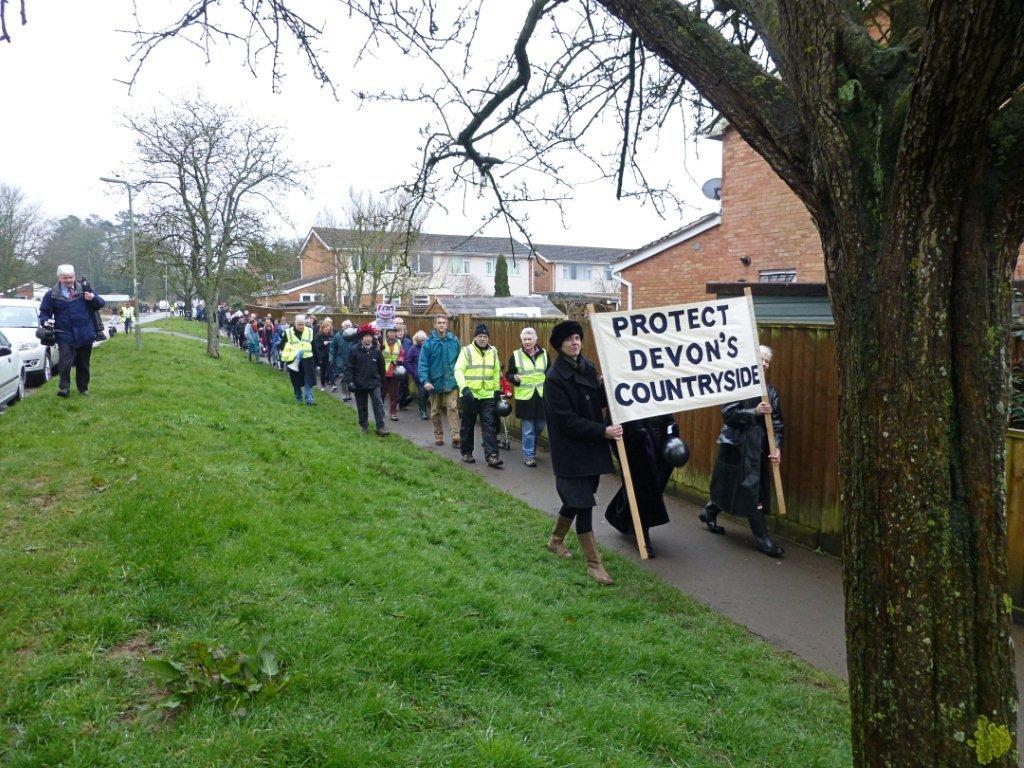 The East Devon Alliance marchers at Feniton last weekend, called for the NPPF to be delayed until unprepared Local Authorities, including EDDC, have a 5-year Land Supply Plan approved.