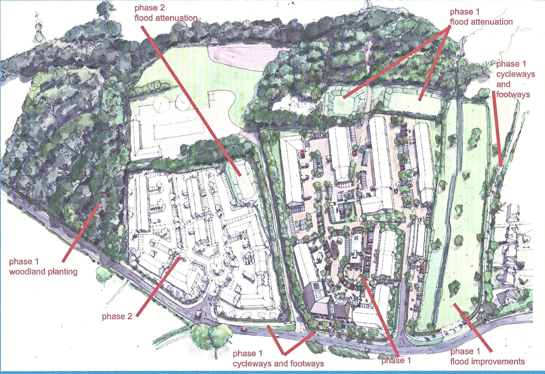 A proposal for the business park is illustrated here (from the Local Plan Representation Library, no. 1969 (Fords) at http://www.eastdevon.gov.uk/lpreplibrary2.pdf. )