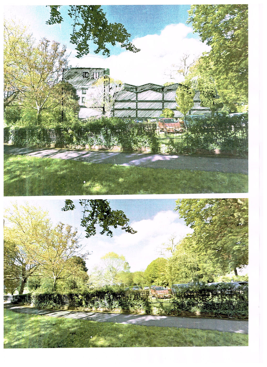 These pictures, drawn from measurements in Pegasus Life’s documents, are what it is believed the development will look like from Station Road ( compared with the present view) :