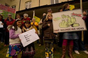 Just thought you’d like to see the picture in today’s Herald a little larger. Mum (Sarah) of dynamic duo says ‘I grew up here climbing the trees and playing at Knowle and now my two boys do the same.’ Thanks to them and to all families who took part in the Mass March.